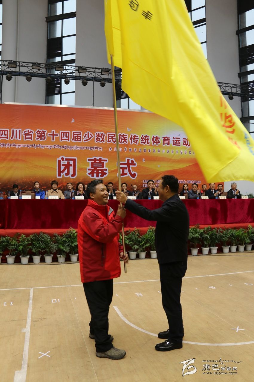 2018年,第十五屆省民運會將由我州承辦,屆時,四川省各民族體育健兒將齊聚情歌故鄉(xiāng)康定。閉幕式上,我州代表團發(fā)出誠摯邀請,并與各民族體育健兒相約:四年后,康巴相聚。、