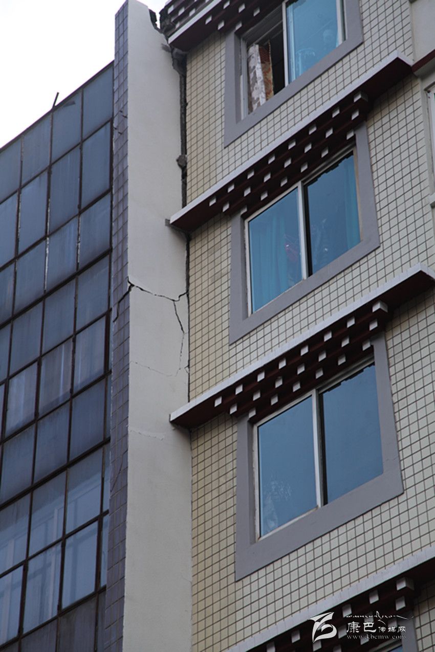 剛沖出報(bào)社不遠(yuǎn),記者就發(fā)現(xiàn)光明路光明小區(qū)附近的小巷中有一些外墻磚不規(guī)則地散落在地上,抬頭一看,發(fā)現(xiàn)一幢建筑的外墻已經(jīng)脫落了一大塊;在州統(tǒng)計(jì)局上側(cè),一幢建筑外墻出現(xiàn)了裂縫,過往的人們都在紛紛觀望,還有人在用手機(jī)拍攝。在西大街,有一幢建筑的陽(yáng)臺(tái)出現(xiàn)移位,與主體建筑間形成了裂縫;在州人民醫(yī)院,門診部大樓出現(xiàn)了嚴(yán)重裂縫,大樓內(nèi)的人員已經(jīng)全部撤離。記者在采訪中發(fā)現(xiàn),此次地震使康定城區(qū)內(nèi)建筑出現(xiàn)了不同程度的外墻磚脫落、裂縫等,城郊有圍墻倒塌的情況發(fā)生,城區(qū)沒有出現(xiàn)建筑物倒塌的情況。
