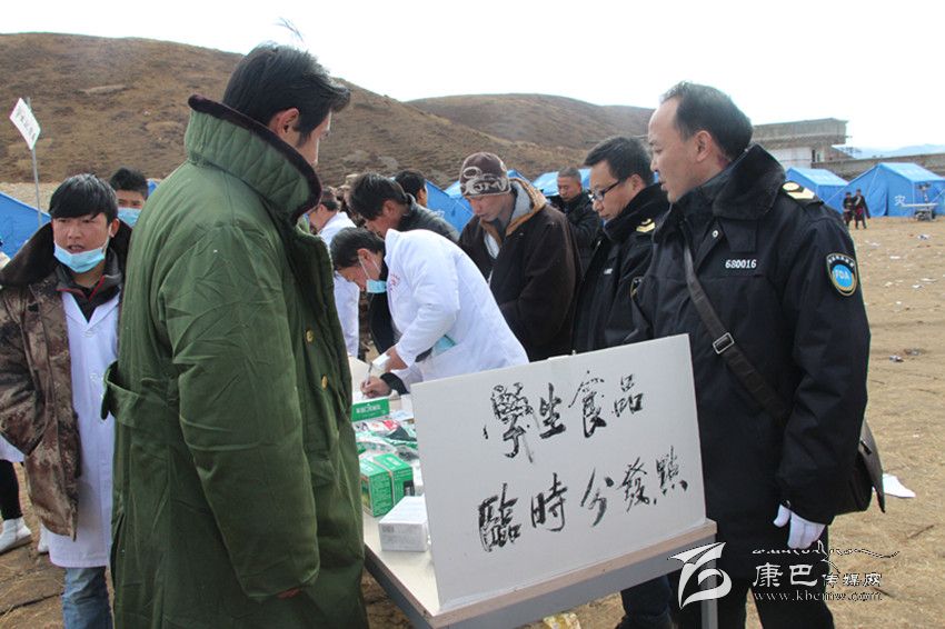 來不及準備干糧和保暖衣物,小分隊深夜翻過海拔4298米的折多山,于23日凌晨2時抵達位于海拔4000米震中的康定縣塔公鎮(zhèn)江巴村木雅祖慶學校。高原的夜晚寒風凜冽,風吹在臉上像刀刮似地疼痛。為保證學校2000余名師生吃上安全放心的早餐,工作人員不顧車途勞累,冒著不斷的余震,立即進入受損的學校食堂,逐項排除食品安全隱患,嚴防震后集體性食物中毒事故發(fā)生,確保食品入口首道防線安全可控。