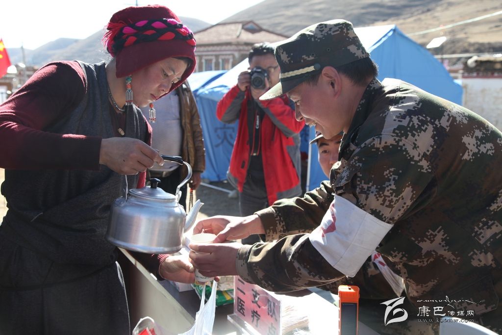一位媒體同仁在接到她們送上的酥油茶時(shí)說:“這酥油茶特別香,熱乎乎的,真的很好喝,從嘴里暖到了心里。”四川部隊(duì)武警二支隊(duì)的軍醫(yī)陳海波告訴記者:“今天早上就看見她們?cè)谶@里送酥油茶,她們一直穿梭在人群里,我們也拿到了她們送上的酥油茶。心里特別的感動(dòng),有這樣的農(nóng)牧民,我們?yōu)榱怂麄冊(cè)倏嘣倮垡灿X得值得。”