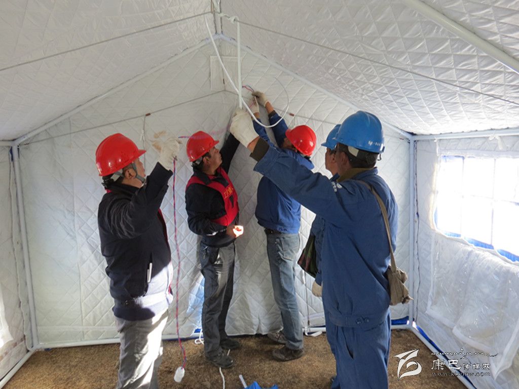 奪拉二村有4個變壓器臺區(qū),其中2個臺區(qū)為人員較多的木雅祖慶學(xué)校,地震使學(xué)校住宿樓變?yōu)槲7浚=?000名學(xué)生轉(zhuǎn)移至學(xué)??盏厣系陌仓命c。為了讓安置點內(nèi)的受災(zāi)師生和應(yīng)急指揮中心盡快用上電,黨員突擊搶險小分隊不僅要在安置點迅速安裝應(yīng)急照明設(shè)施,同時還要從圍墻和學(xué)校食堂的樓頂上重新布放近3段2公里長的臨時電源線。學(xué)校圍墻因地震而搖搖欲墜,稍微用點力,墻、磚塊或水泥就會掉下來,面臨這一難題,公司黨總支沉著應(yīng)對,迅速組織塔公供電所與新都橋供電所的黨員干部趕往震中,同時安排其余供電所的黨員干部迅速增援。先期到達(dá)的救援人員在余震不斷發(fā)生的情況下,對受損供電設(shè)備及線路進(jìn)行了緊急處理;在后期人員趕到后,公司黨總支迅速研究制定工作方案,科學(xué)分工:第一組黨員突擊搶險隊負(fù)責(zé)隱患排查,第二組黨員突擊搶險隊負(fù)責(zé)電線布放,第三組黨員突擊搶險隊負(fù)責(zé)救災(zāi)帳篷的照明安裝。在三個小組隊員的共同努力下,用近三個小時的時間就解決了應(yīng)急指揮中心、醫(yī)療隊和臨時安置點的照明安裝這一難題。