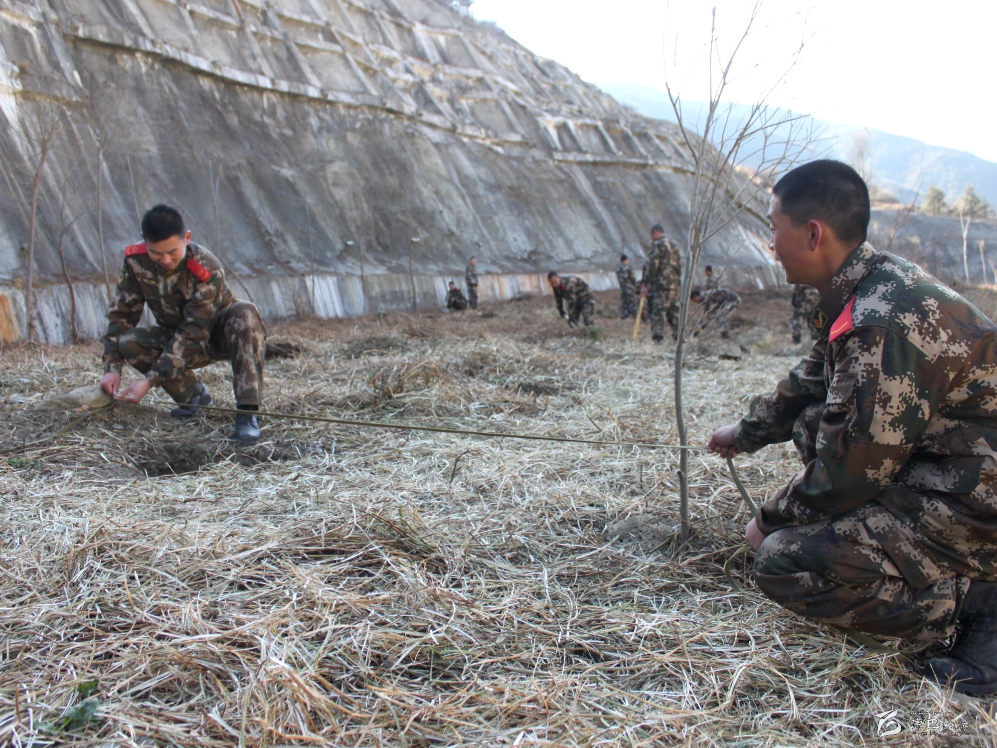 又到一年植樹時,3月12日至13日,武警四川總隊(duì)二支隊(duì)官兵利用訓(xùn)練間隙,在營區(qū)周圍的荒坡上刨石坑、培細(xì)土,種下了柳樹、沙棗、白楊等耐寒耐旱樹種。駐扎多年來,官兵用勤勞的雙手為雜草叢生的荒山栽下了勃勃生機(jī),部隊(duì)營區(qū)及周圍由官兵栽植的樹木已將荒山野嶺變?yōu)榍嗌奖處X。 (于傳濤 謝偉 攝影報(bào)道)
