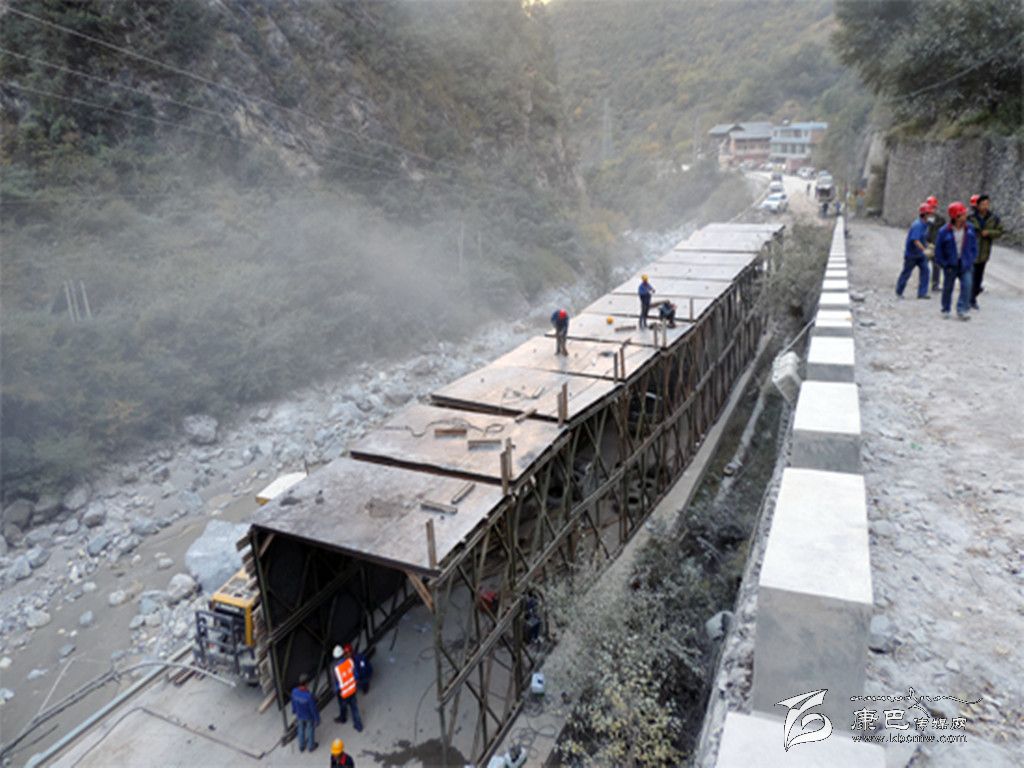 針對山體崩塌及道路受阻情況,甘孜水電公司與有關(guān)參建單位就隧道搶通、防護(hù)網(wǎng)安裝等多個(gè)防護(hù)搶通方案進(jìn)行了比選和論證,確定了架設(shè)鋼結(jié)構(gòu)棚洞應(yīng)急保通方案,并用8天時(shí)間高效快捷地完成了78米長的一期防護(hù)棚洞建設(shè),使湯壩土料場公路具備臨時(shí)通行條件,緩解了山體崩塌給當(dāng)?shù)厝罕娚a(chǎn)生活造成的影響,切實(shí)履行了央企的社會(huì)責(zé)任,有效降低了山體崩塌對長河壩工程建設(shè)的進(jìn)度影響。