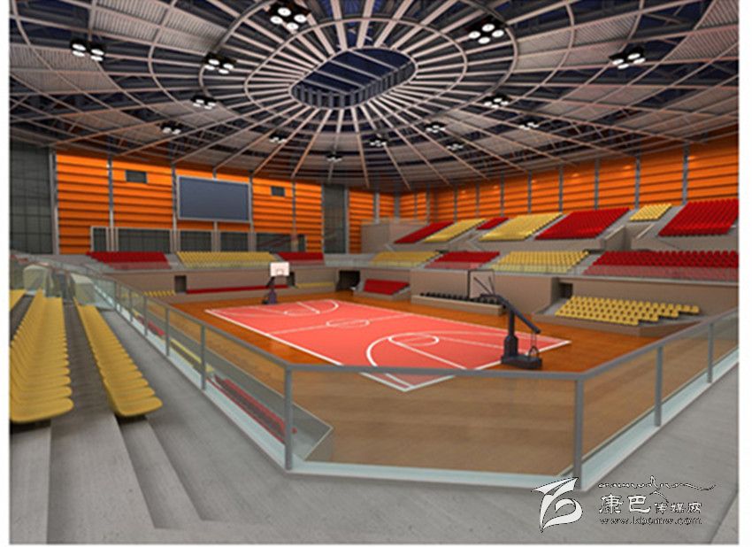 該館負(fù)一層為一個238車位的地下停車庫和若干設(shè)備用房。一層核心區(qū)是一個可進(jìn)行籃球、排球、手球、羽毛球、乒乓球、體操等比賽的標(biāo)準(zhǔn)化綜合比賽場;周邊設(shè)休息室、會議室、消音室、醫(yī)療室、分線室、檢錄室、洗浴室、準(zhǔn)備室、轉(zhuǎn)播室等附屬功能用房。利用該轉(zhuǎn)播室可以實現(xiàn)網(wǎng)絡(luò)、電視對場內(nèi)活動的實時轉(zhuǎn)播。二層主要有醫(yī)務(wù)室和休息室。三層是控制中心機(jī)房、工作室。聲光控制室、計時計分屏室在四層。體育場內(nèi)共設(shè)10個無障礙席位在內(nèi)的2998個固定座席和730活動座位,分布在1至4層。