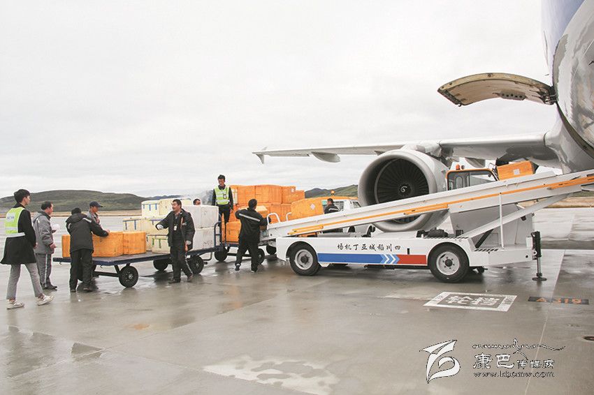 成箱的松茸被運上稻城亞丁機場當天的航班。