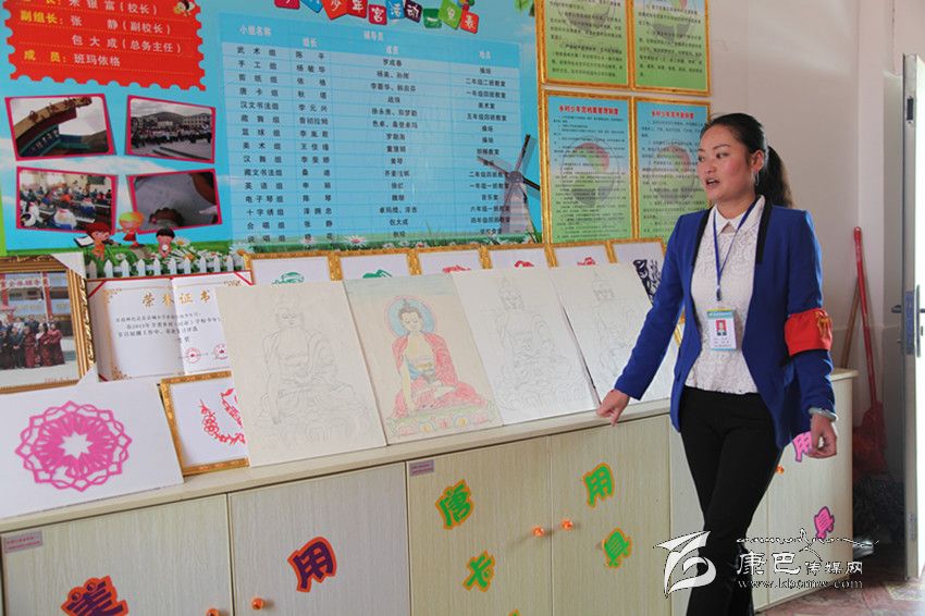在少年宮孩子們參加格薩爾說唱表演的照片和一件件作品前,負(fù)責(zé)少年宮教學(xué)的張靜老師告訴記者,本著弘揚傳承傳統(tǒng)文化的宗旨,少年宮目前設(shè)有14個興趣小組,包括唐卡、說唱、舞蹈、剪紙、藏文書法、手工、電子琴等,有30多名輔導(dǎo)老師利用業(yè)余時間和自己的特長從事教學(xué)工作,另外,在色達(dá)縣委宣傳部的支持下,縣文化館還專門選派了兩名輔導(dǎo)員擔(dān)任說唱組的教學(xué)工作。