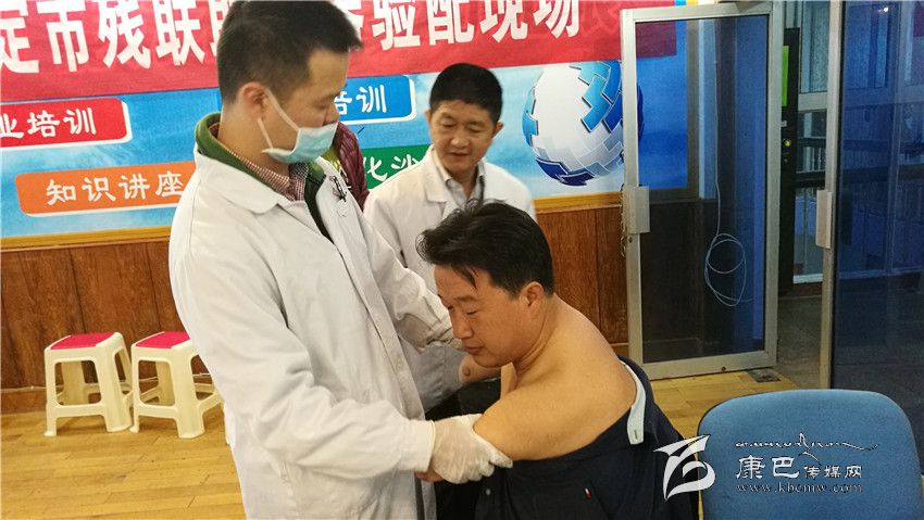 專家為殘疾人進行假肢取型。