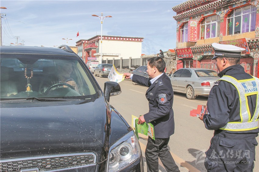 發(fā)放道路交通安全手冊(cè)。石渠縣委宣傳部供稿