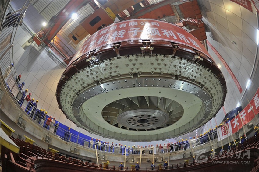 該轉(zhuǎn)子外徑尺寸12.5米、高3.6米、總重量1240噸,歷經(jīng)145天組裝完成,經(jīng)檢測(cè)該機(jī)組轉(zhuǎn)子圓度、磁軛波浪度等質(zhì)量指標(biāo)均超過廠標(biāo)及國優(yōu)標(biāo)準(zhǔn),優(yōu)于集團(tuán)公司精品工程要求。圖為組裝現(xiàn)場(chǎng)。