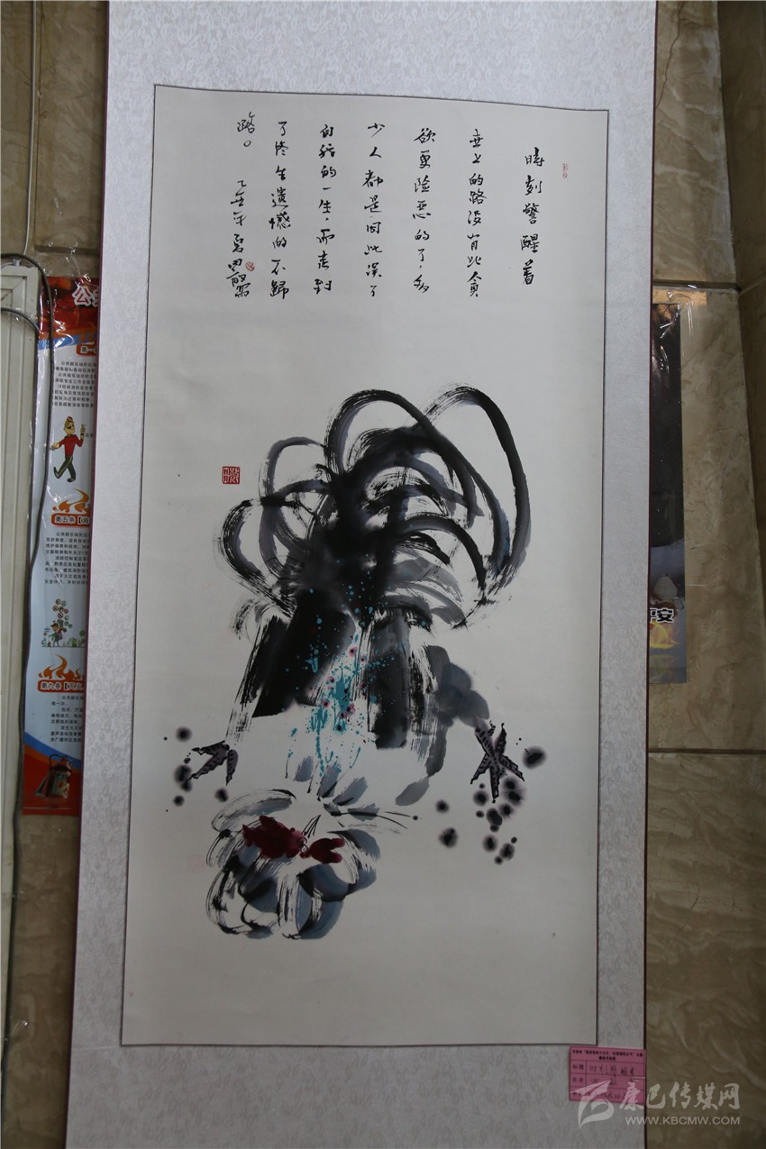 “‘松潔鶴鳴’是我親筆所繪,畫(huà)中‘松潔’表現(xiàn)的是黨員干部廉潔自律、風(fēng)清氣正的一種政治生態(tài)環(huán)境;‘鶴鳴’表現(xiàn)的是警鐘長(zhǎng)鳴,時(shí)時(shí)刻刻向黨員干部敲敲‘鐘’?!敝堇夏甏髮W(xué)書(shū)法班今年70歲的胡鄧珠指作書(shū)畫(huà)作品興奮地說(shuō)。