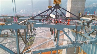 針對這一難題,建設中創(chuàng)新纜索吊裝系統(tǒng)設計:一是優(yōu)化吊裝使用的支索器,增加主纜抗風穩(wěn)定性,使牽引繩不致纏繞;二是找準風場規(guī)律,確定有效施工時間為早上6點至7點開始起吊,12點之前完成全部吊裝作業(yè);三是制定和完善吊裝作業(yè)的管理體制體系,增設視頻和音頻監(jiān)控系統(tǒng),提升作業(yè)規(guī)范性。通過上述措施有效的保障了鋼桁梁吊裝的順利完成。從2017年9月26日開始吊裝鋼桁梁,到2018年2月6日勝利合龍,共歷時133天。