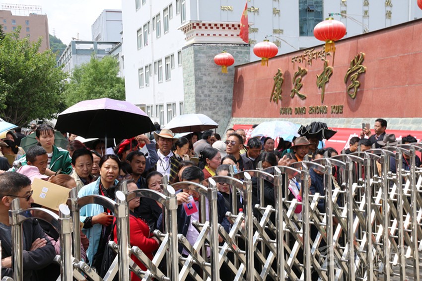 開考前,1600多名考生在康定中學(xué)考點候考。