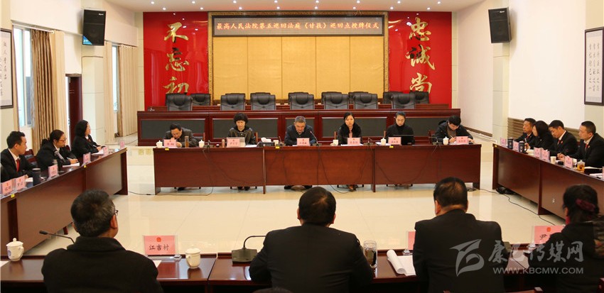 本網(wǎng)訊 11月13日,最高人民法院第五巡回法庭(甘孜)巡回審判點(diǎn)授牌儀式在甘孜州中級(jí)人民法院舉行,此次在四川設(shè)立兩個(gè)巡回點(diǎn),州中級(jí)人民法院是授牌點(diǎn)之一。最高人民法院第五巡回法庭分黨組成員、副庭長汪國獻(xiàn)為該院授牌并在儀式上作講話,甘孜州中級(jí)人民法院黨組書記、代理院長付寶接牌并作相關(guān)工作匯報(bào)。