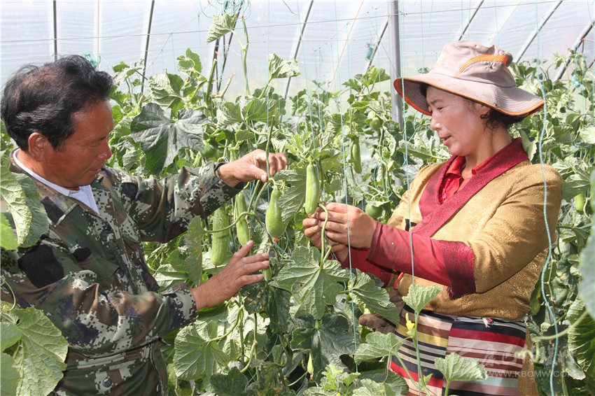 理塘縣甲洼鎮(zhèn)俄曲村貧困藏族農(nóng)戶跟技術(shù)員學(xué)習(xí)蔬菜種植技術(shù)。 本網(wǎng)資料庫(kù)圖