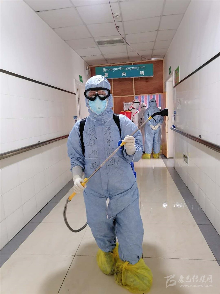 除了日常護理,根呷她姆的還要負責(zé)每日病房的消毒工作、垃圾清理以及清潔衛(wèi)生工作?!跋竟ぷ鞲裢庵匾?,必須做到不漏一個死角。”根呷她姆強忍著84消毒液刺激引起的嗆咳及生活垃圾引起的惡心發(fā)嘔,一絲不茍,任勞任怨,做好每一天的消殺清潔工作,讓病毒無處遁形。在同事面前她是護士長、家長,在病人面前,她是護士、護工、清潔工、家屬、心理老師……根呷她姆每天在各種角色間轉(zhuǎn)換自如,不怕臟、不怕累、不怕苦,拼盡全力只為打贏這場沒用硝煙的戰(zhàn)爭!