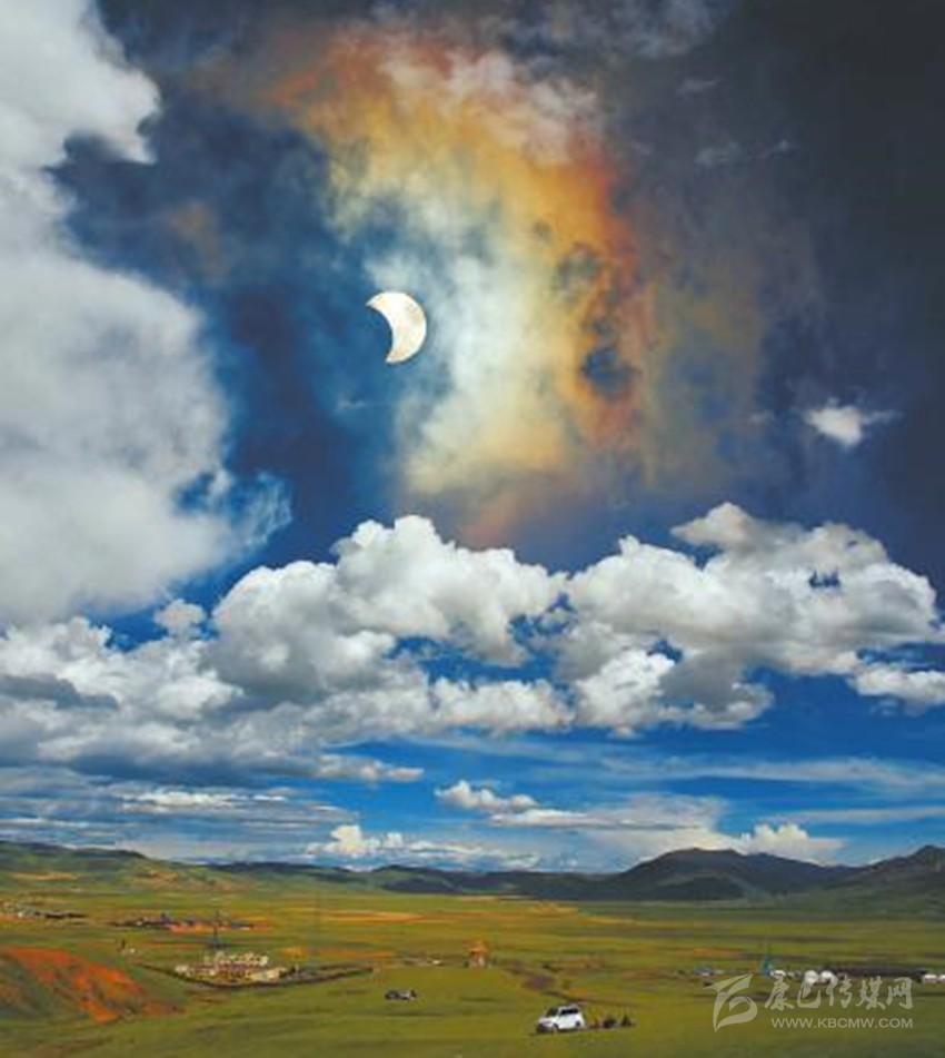 6月21日,甘孜州理塘縣毛埡草原上空的日食景象。 葉強(qiáng)平 攝