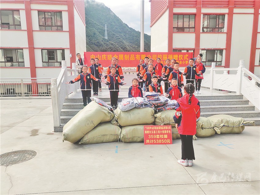 本網(wǎng)訊 9月8日上午,廣東省中山慶璉金屬制品有限公司向白玉縣第三完全小學(xué)捐贈(zèng)了359套校服,總價(jià)值約53850元。圖為學(xué)生代表現(xiàn)場(chǎng)演唱歌曲《聽(tīng)我說(shuō) 謝謝你》,表達(dá)對(duì)愛(ài)心企業(yè)的感謝。