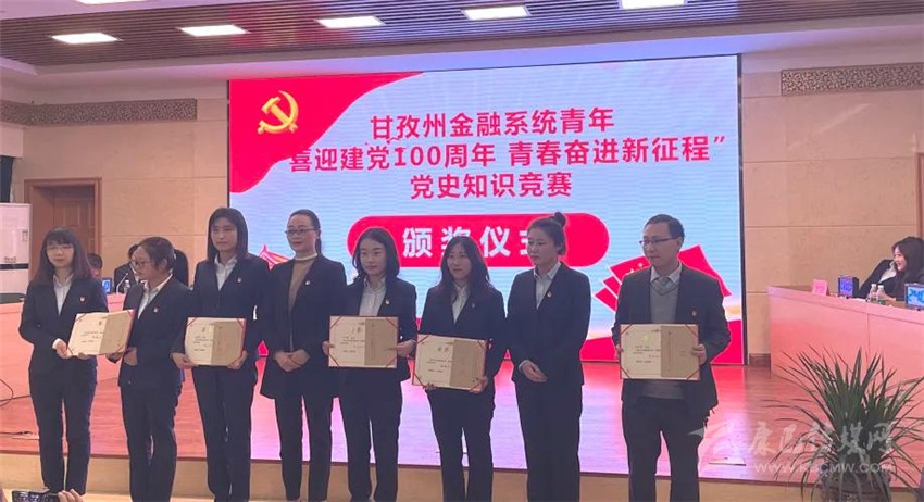 本網(wǎng)訊(陳建軍 江承艷)4月27日,農(nóng)行甘孜分行黨史學(xué)習(xí)青年代表競(jìng)賽小組在2021年甘孜州金融系統(tǒng)青年“喜迎建黨100周年 青春奮進(jìn)新征程”黨史知識(shí)競(jìng)賽中一舉斬獲三等獎(jiǎng)。該知識(shí)競(jìng)賽由人民銀行甘孜州中心支行舉辦,甘孜州金融機(jī)構(gòu)15支代表隊(duì)參加競(jìng)賽,農(nóng)行甘孜分行黨委副書(shū)記、專家、副行長(zhǎng)周莉萍及其他金融機(jī)構(gòu)負(fù)責(zé)人出席現(xiàn)場(chǎng)并為所有選手加油鼓勁。競(jìng)賽分為初賽和決賽兩個(gè)部分,初賽采用閉卷考試,決賽為現(xiàn)場(chǎng)搶答、必答等,甘孜分行青年代表隊(duì)以98分初賽筆試成績(jī)殺入決賽。在決賽環(huán)節(jié)中,農(nóng)行青年員工代表積極搶答,沉著應(yīng)戰(zhàn),流利回答,獲得裁判好評(píng)以及現(xiàn)場(chǎng)觀眾雷鳴般的掌聲。經(jīng)過(guò)激烈角逐,農(nóng)行代表隊(duì)取得個(gè)人第四名和團(tuán)體三等獎(jiǎng)的優(yōu)異成績(jī)?;顒?dòng)最后,全體參賽、觀賽人員齊唱《唱支山歌給黨聽(tīng)》,表達(dá)了對(duì)共產(chǎn)黨建黨100周年的深切祝福。