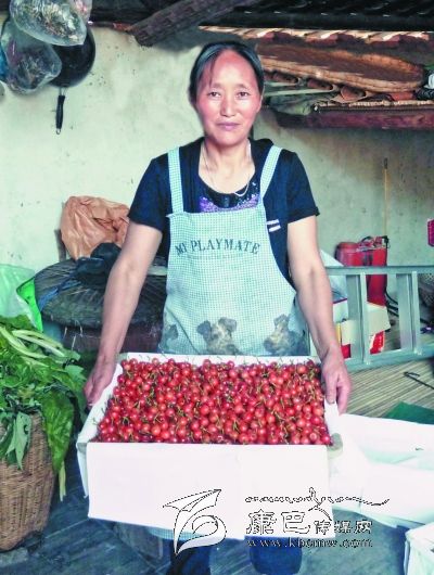 現(xiàn)在正值櫻桃成熟的季節(jié),這幾天,張樹(shù)芬夫婦兩天天都在果園里忙著摘櫻桃,因?yàn)槿耸植粔?,在外打工的女兒也特地回家?lái)幫忙。“我們家的櫻桃樹(shù)種的地勢(shì)低,每年櫻桃也是村里最早熟的,這幾年收櫻桃的老板都是早早地就來(lái)我家等著過(guò)秤了。”張樹(shù)芬一邊忙著把剛從樹(shù)上摘下來(lái)的櫻桃裝筐,一邊說(shuō)今年櫻桃結(jié)得好,價(jià)錢(qián)也好。