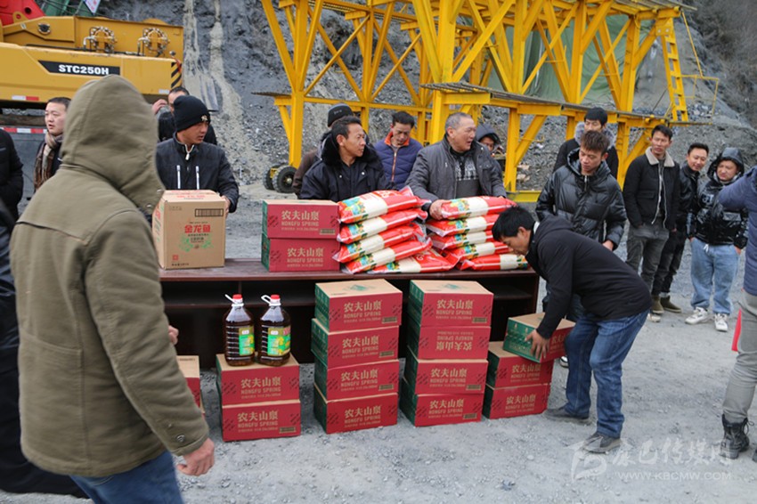 在施工地現(xiàn)場,工行相關(guān)負責(zé)人向項目組員工們一一握手,“新年快樂,您辛苦了!”隨著一聲聲溫暖的問候,滿載著新春祝福的慰問品被送到了鐵路工作人員手中。