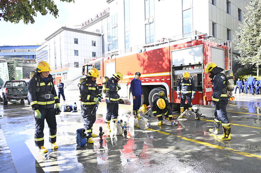 消防人員開(kāi)展消防救援訓(xùn)練。 實(shí)習(xí)記者 賴強(qiáng) 攝