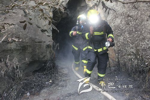 消防官兵在使用有毒氣體探測儀對現(xiàn)場氣體進行檢測后發(fā)現(xiàn),雖然煙氣刺鼻,但未檢測出有毒氣體。在使用排煙機對山洞進行持續(xù)排煙后,中隊派出兩名消防官兵佩戴空氣呼吸器和強光燈在水槍的掩護下進入山洞偵查煙氣源。因山洞內煙霧大,溫度高,能見度低,第一批消防官兵未能找到煙氣源。在短暫準備后,第二批消防官兵攜帶相關器材進入山洞繼續(xù)尋找。在距離山洞口十幾米的地方,消防官兵發(fā)現(xiàn)了大量正在燃燒的電纜線,經(jīng)初步確定,大量白煙就是電纜線燃燒后產(chǎn)生的。因山洞長時間受高溫烘烤隨時可能倒塌,消防官兵在與當?shù)卣撠熑藚f(xié)商后對山洞洞口實施了封閉滅火。