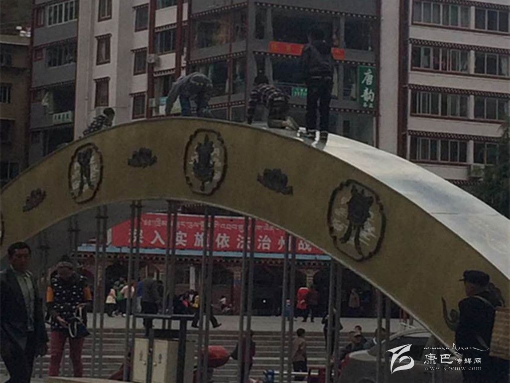 在康定劇場前面的廣場上,每天傍晚,廣場舞大叔大媽都準(zhǔn)時(shí)前來報(bào)到。孩子們則在人群中玩耍。7歲的陽陽(化名)被奶奶帶著來到廣場上學(xué)習(xí)滑旱冰,滑著滑著小伙伴出現(xiàn)了。脫掉冰鞋,陽陽和大家一起開始在“康定情歌”歌譜造型的漢白玉雕塑上攀爬。奶奶則在廣場另一端和老友擺龍門陣,根本無暇顧及。“征服”了“康定情歌”以后,陽陽和伙伴們繼續(xù)“征服”康定劇場臺階前的大塊漢白玉雕塑。“趕快下去,這些娃娃真沒得家教!”一位愛管閑事的中年人制止了孩子們的“不文明”行為。他離開后,陽陽再次奔向漢白玉雕塑……