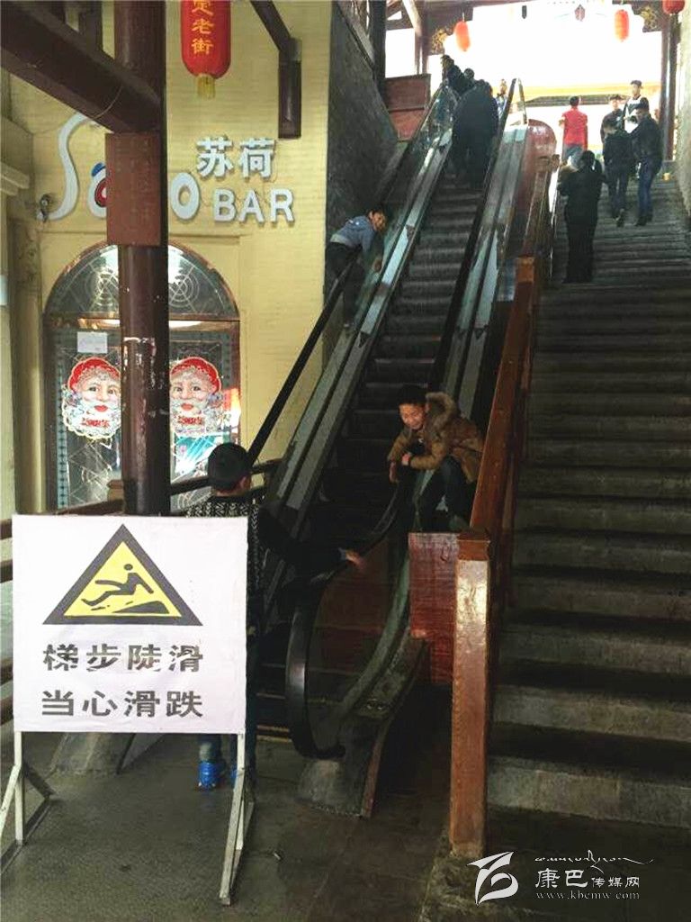 “唰,唰,唰”一群10歲出頭的孩子們從停運(yùn)電梯的扶手上飛速滑下,這是記者在康定“溜溜城”商業(yè)步行街下方出入口處電梯看到的一幕??匆娪浾咴谂恼?,小學(xué)四年級的小亮(化名)絲毫沒有慌亂,嫻熟的翻越動(dòng)作表明這里是他和朋友們的常來之地。記者目測電梯長度約有60米左右,上下落差較大,在電梯扶手上玩耍的孩子極易受傷。小亮和朋友們卻不以為然:“這個(gè)梯子好像游樂園里的激流勇進(jìn),好好耍哦!”孩子們完全忽略了潛在的危險(xiǎn)。