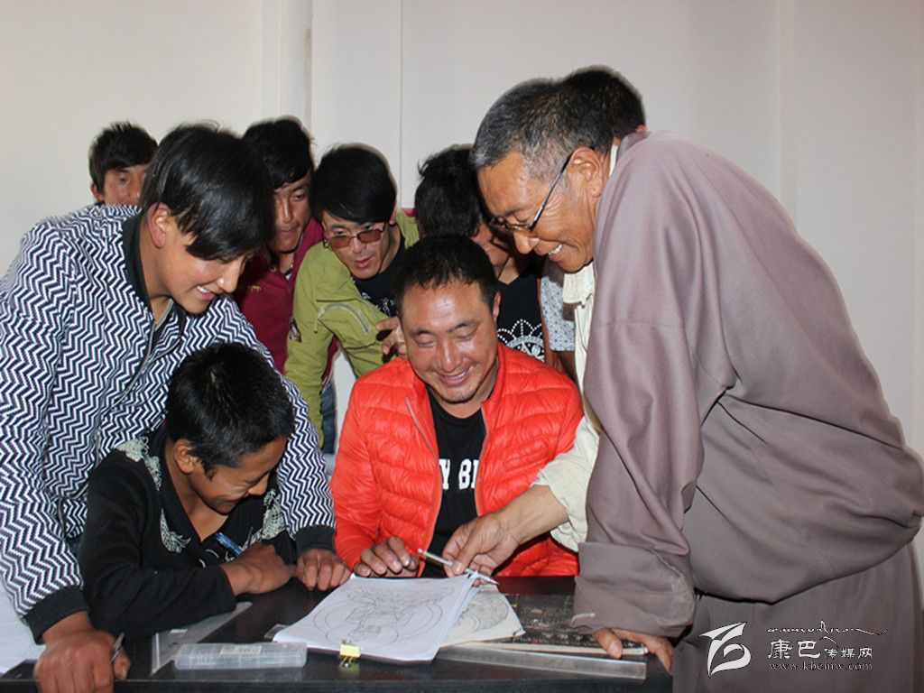 四年前,呷絨多吉自籌資金在家中辦起了唐卡繪畫培訓班,繪畫所用的紙張、顏料、筆墨等全由他免費提供給學生,幾十個學生的伙食,則由家中的兒媳李露華承擔,家務事由妻子奪呷一個人操持。四年如一日的堅持,其中的辛苦不言而喻,家人卻毫無怨言,日復一日年復一年地無私奉獻著。