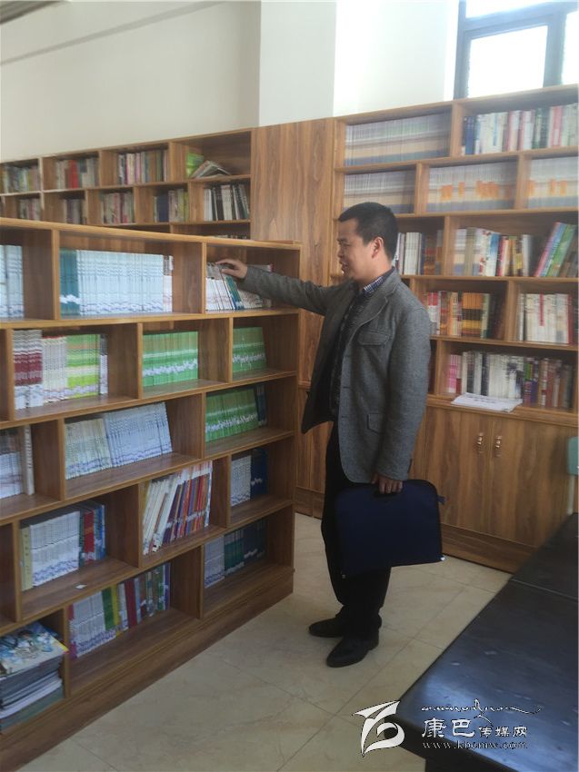 梅紅兵在德格縣一完小整理捐贈書籍。