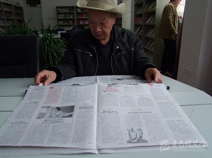 4月23日,記者走進(jìn)州圖書館,看到一位老者正在認(rèn)真的閱讀報(bào)紙,眼神隨著指尖的移動(dòng)來回游走,臉上的溝壑雖深,臉頰卻依舊紅潤,老人精神矍鑠。老人姓王,今年72歲,每天吃過飯后,他就來到圖書室,呆上三個(gè)小時(shí)左右,看自己喜歡的書,然后順便買菜回家。王大爺興致盎然地告訴記者:“現(xiàn)在科技發(fā)達(dá)了,網(wǎng)絡(luò)給人們帶來了很大的便利,不過我不太喜歡在網(wǎng)上看書,年輕的時(shí)候,條件沒有現(xiàn)在好,買不起書。但我對紙質(zhì)書情有獨(dú)鐘,這是年輕時(shí)養(yǎng)成的習(xí)慣;當(dāng)然,并不是說,我反對電子閱覽,現(xiàn)在年紀(jì)大了,看電腦、手機(jī),身體吃不消,何況我用的是老年機(jī),上面沒有看書的功能?!碑?dāng)記者問他圖書室里有那么多書,為什么偏偏選擇報(bào)紙時(shí),他說:“我平時(shí)喜歡看新聞,但廣電媒體有一個(gè)弊端,就是一晃而過,報(bào)紙卻不一樣,一遍沒看懂還可以多看幾遍,而且報(bào)紙涉及的內(nèi)容也很廣,方針政策、健康、文學(xué)等等都有,可以說看報(bào)紙是我生活的一個(gè)補(bǔ)充。圖書館里面有很多的報(bào)紙,選擇余地大,夠我看了;偶爾我也會(huì)翻翻其它的雜志,但是手中一刻沒有報(bào)紙,就感覺今天白來圖書館了。”