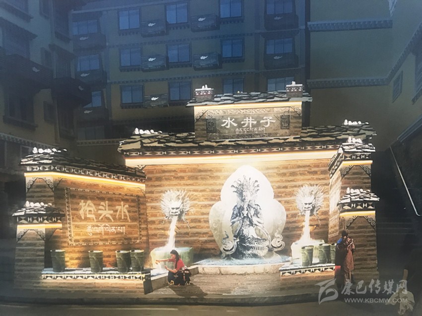 在現(xiàn)場,“水井子”原址已被圍擋封閉施工。根據(jù)設(shè)計(jì),此次提升將融入“搶頭水”民族習(xí)俗,并結(jié)合互動性祈福、見證愛情的表現(xiàn)手法旨在將水井子打造成為康定城中的體驗(yàn)式民俗景點(diǎn)。從外觀上看,內(nèi)街水井依然采用開放式外墻,正中神龕放置藏族水龍王塑像,兩邊塑造龍頭,以“二龍噴水”景觀作為新的出水方式,下方池邊則安放傳統(tǒng)背水姑娘雕塑。