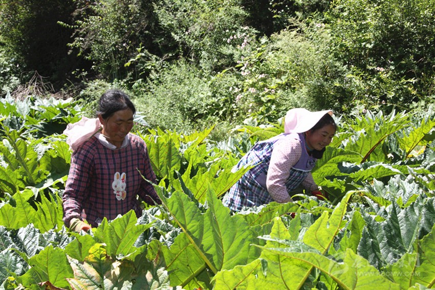 8月5日,康定市雅拉鄉(xiāng)雀公村,一場大雨之后,天空如洗,青山如玉??刀ㄊ腥腹兴幉姆N植農(nóng)民專業(yè)合作社的負責人梁發(fā)林和陳繼平來到藥材種植基地,查看藥材生長情況。茂密的大黃已經(jīng)齊腰深了,滿目蔥翠?!斑@段時間雨水比較集中,雜草叢生,害蟲滋生,要增加人手和請教農(nóng)科所的專家解決病蟲害的問題?!绷喊l(fā)林和陳繼平商量,藥材種植已經(jīng)到了加強管理的關(guān)鍵時刻了,不能掉以輕心。