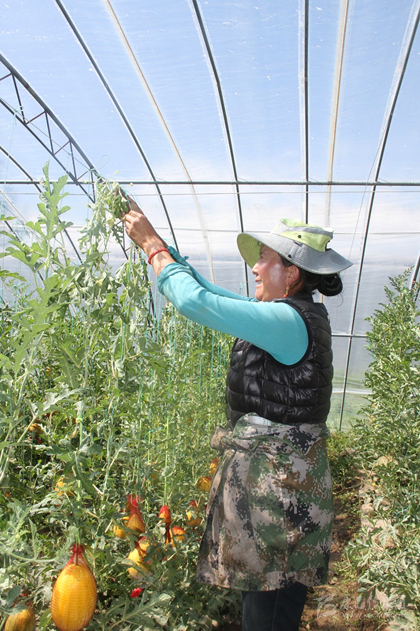2017年底,澤仁正呷家5口人在“飛地”設(shè)施蔬菜大棚租賃收入分紅1440元,加上她在園區(qū)打工的1萬多元,領(lǐng)取的各項惠民資金,順利實現(xiàn)脫貧。讓她更高興的是,在家門口不遠打工,還可照顧家庭?,F(xiàn)在園區(qū)龍頭企業(yè)瑪吉阿米已建成40座3萬平方米冬暖式蔬菜大棚,露地蔬菜生產(chǎn)基地1050畝,種植了大棚西瓜、番茄、彩椒和茄子等蔬菜產(chǎn)品供應(yīng)當?shù)丶俺啥嫉鹊厥袌?,年產(chǎn)值達到300多萬元,帶動下依村227人直接受益,20戶貧困戶戶均增收1500元。2017年底,下依村實現(xiàn)整村脫貧。