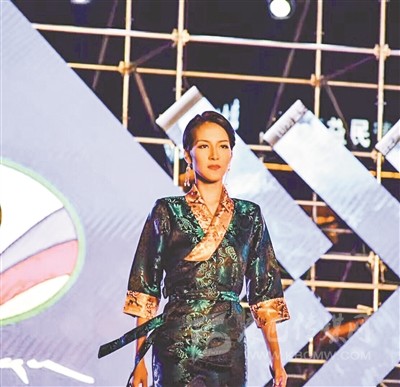 亞瑪措正在進(jìn)行T臺(tái)走秀。