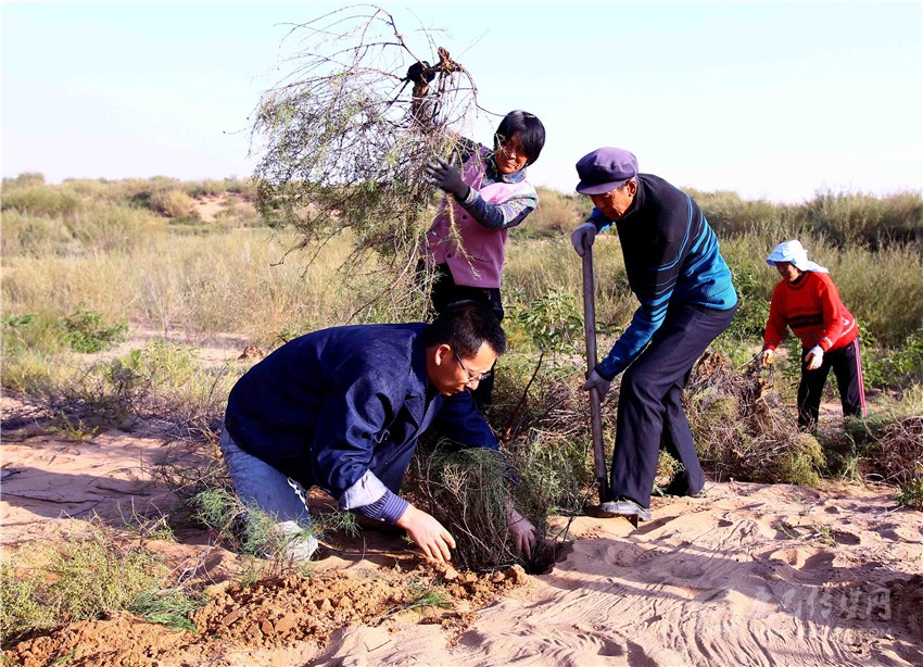 張應(yīng)龍的造林面積目前已超過38萬畝。而已近花甲之年的張應(yīng)龍并不滿足于沙漠治理僅僅產(chǎn)生生態(tài)效益,他希望能從沙漠里找到一條“生態(tài)致富路”。經(jīng)過多年的實踐,他找到一種叫“長柄扁桃”的灌木兼?zhèn)渖鷳B(tài)與經(jīng)濟特性。