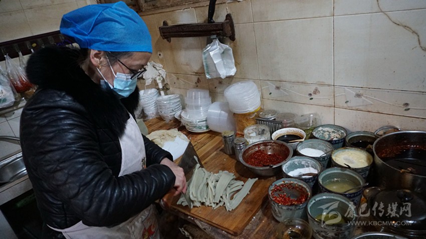 打開門店,鋪好案板,取出昨晚“拷”好的涼粉,以快刀嫻熟將其切條,清點一下碗筷,在手機(jī)端打開“餓了么”App等待客人訂餐的信息……。上午8點,53歲的辜良虹又在對傳統(tǒng)味道的雕琢中,開啟了開心的一天。這12年來,大多數(shù)康定市民的味蕾上,都留下了這種開心的記憶。