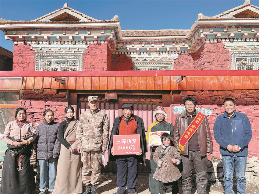 圖為慰問組一行向瑪桑父母送上三等功喜報和慰問金。