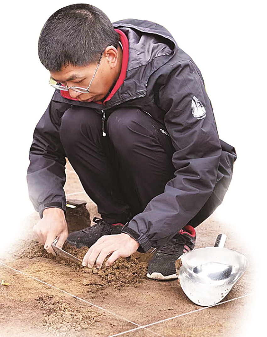 譚培陽在稻城皮洛遺址從事發(fā)掘工作。