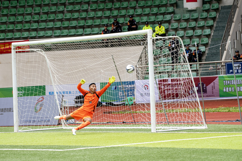 比分領(lǐng)先的甘南隊(duì)此后通過(guò)傳導(dǎo)球試圖控制住場(chǎng)上局勢(shì),昌都隊(duì)則全力逼搶尋求機(jī)會(huì),第16分鐘,昌都隊(duì)員一記倒鉤中場(chǎng)解圍助攻,舒展的動(dòng)作引得全場(chǎng)點(diǎn)贊。在第37分鐘,昌都隊(duì)10號(hào)邊路中傳,甘南隊(duì)55號(hào)一記慣性解圍動(dòng)作卻將球推向自家球門,門將始料未及,一個(gè)“烏龍球”將比分改寫(xiě)為1:1,雙方回到同一起跑線。下半場(chǎng)易邊再戰(zhàn),昌都隊(duì)通過(guò)更換進(jìn)攻組合制造出更多威脅,但多次沖擊對(duì)方球門未果,導(dǎo)致場(chǎng)上局勢(shì)一度膠著。