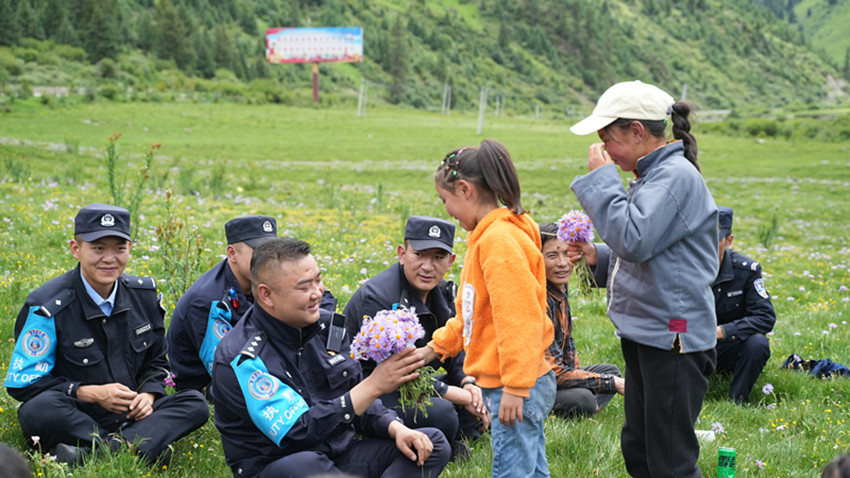 高照洪要求派出所大門24小時都為群眾敞開,保證服務不缺位。為找到牧民丟失的21頭牦牛,他帶領戰(zhàn)友兩天兩夜翻雪山、住牛棚;為保護牧民牦牛不被野狼侵擾,他帶領戰(zhàn)友徹夜守護;為化解矛盾糾紛,他可以徹夜釋法明理;牧場遷徙,總有他與民同行的身影……今年7月11日,他率隊“云上護航”夏季牧場遷徙,在海拔4800米的昌戈村牧場上演警察版超真實“向云端”,被《人民日報》、新華社、人民網等主流媒體相繼集中報道。
