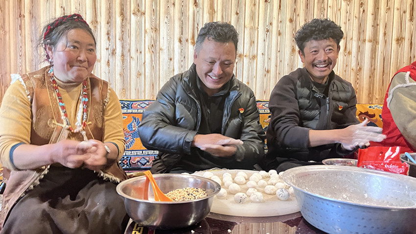 這邊拉著家常,那邊一碗碗熱氣騰騰的湯圓端上了桌。席間,朱文秀品嘗著這象征“團圓”的湯圓,還不忘關(guān)心著格絨家的三女兒甲初拉姆的學(xué)習(xí)、就業(yè)意愿等情況,勉勵她要好好學(xué)習(xí),將來更好地建設(shè)祖國。