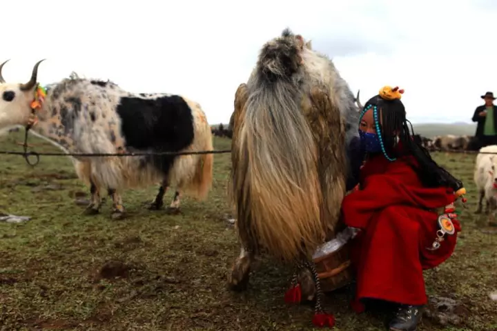 純純的牦牛奶是甜甜的、濃濃的、厚厚的、奶味十足。可以把糌粑揉成勺子的形狀吃牛奶,一口糌粑配一口牦牛奶。