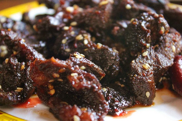 3500米以上地區(qū)這些地方生長(zhǎng)著許多野生藥種如貝母,蟲(chóng)草等,耗牛常食這些藥材,其肉鮮美無(wú)比,殺后可炒紅燒,清燉或涼曬成干巴等,其味獨(dú)特,吃耗牛肉在迪慶,實(shí)在是一種享受。并可在市場(chǎng)購(gòu)買干巴,肉松等作饋贈(zèng)青朋好友的禮品。牦牛肉可以粘辣椒油,味道仍然鮮美??刀ǖ呐H獠粌H有牦牛肉,還有熏牛肉等等,比起其他康定特產(chǎn)更是別具一番風(fēng)味。