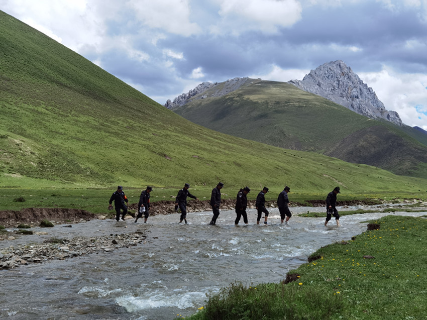 護(hù)林隊(duì)跋山涉水進(jìn)行日常巡護(hù)。