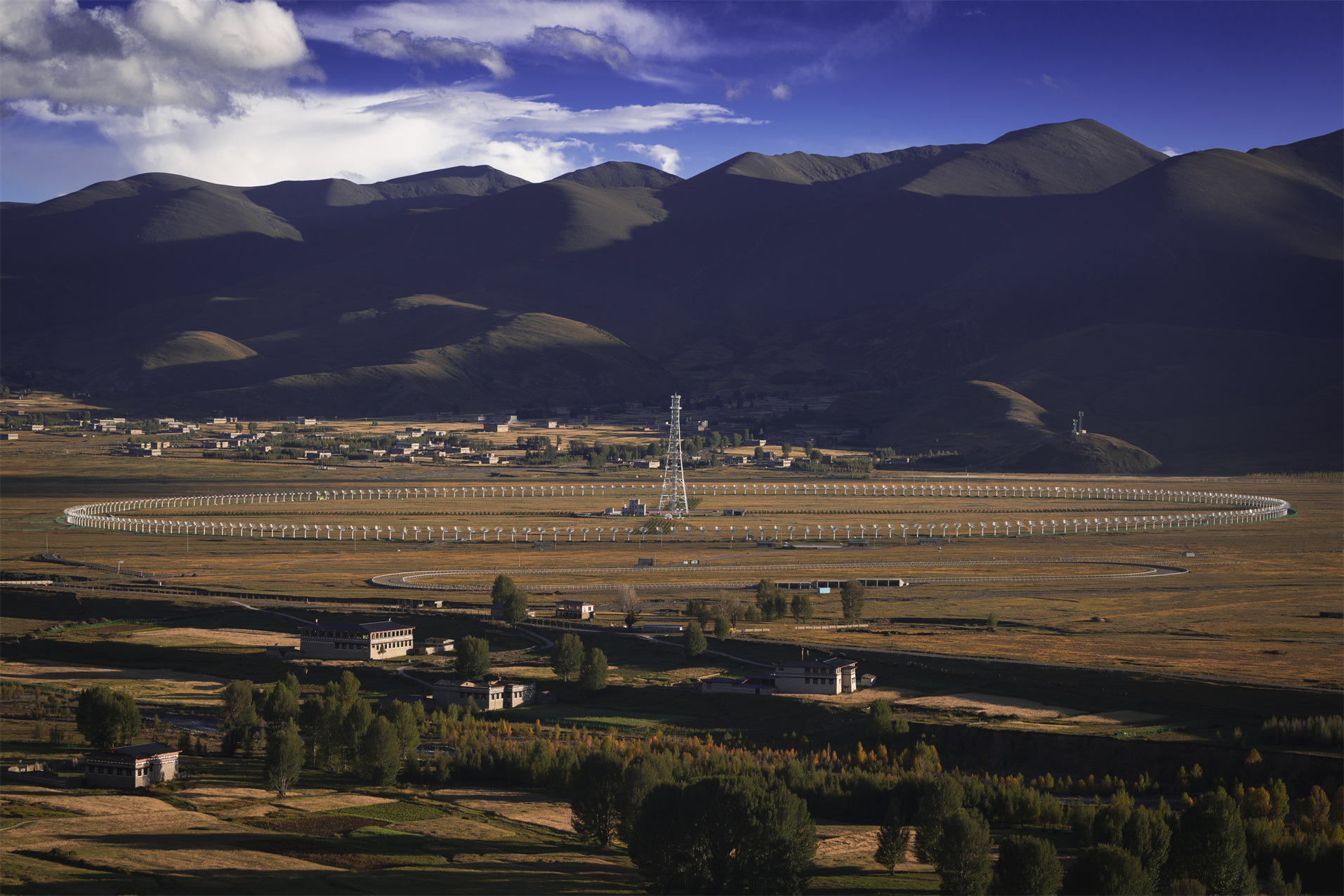 稻城因海拔高、地勢平坦、空氣潔凈、大氣視寧度和透明度高,被認(rèn)定為天文觀測的最佳地之一。2013年,國家在這里啟動了天文科技集群規(guī)劃,設(shè)計重大天文科技項目9個,目前已完成了高海拔宇宙線觀測站、子午二期等3個重大科學(xué)裝置。其中,海拔4410米的高海拔宇宙線觀測站(也稱為“拉索”),由中國科學(xué)院高能物理研究所的科學(xué)家們耗時4年建設(shè)完成,是目前世界上海拔最高、規(guī)模最大、靈敏度最強的宇宙射線探測裝置。2023年,全球規(guī)模最大的太陽射電成像裝置——“子午工程”二期圓環(huán)陣太陽射電成像望遠(yuǎn)鏡也在稻城縣主體完工。