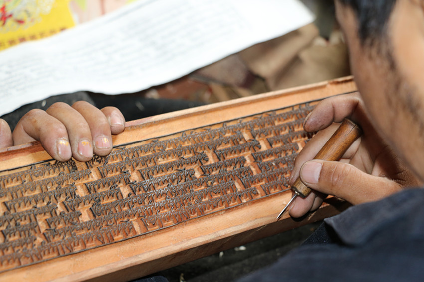 彭措澤仁現(xiàn)在的主要工作是核對、修復(fù),幾千塊有破損、錯(cuò)字或被老鼠咬壞的印版,經(jīng)他手得以復(fù)原。每完成一塊,彭措澤仁都會(huì)雙手將印版高舉過頭,閉目許愿。這是“敬畏之心”。
